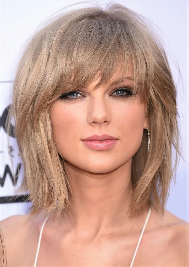 Стрижка середньої довжини з чубком підходить для жінок старше 30. Чолка обов’язково повинна бути густою і прямою. З лінією трохи вище брів, вона підкреслить правильність і вишуканість рис обличчя.