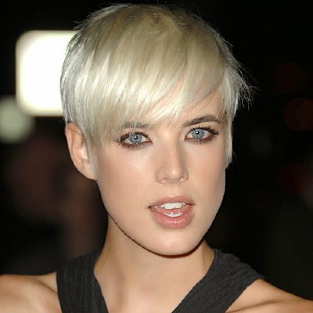 Яркая блондинка с зачесанной назад стрижкой под пикси