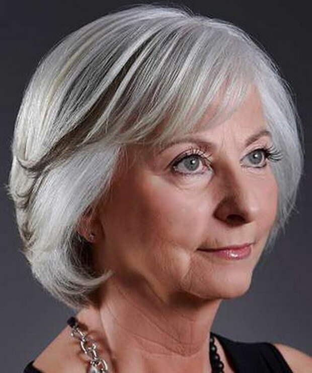 Эта выпрямленная женская стрижка придает нам все виды утонченности и шика. Сделайте свои короткие седые волосы гламурными всего за несколько минут, просто расчесав их от лица и закрепив лаком для волос.