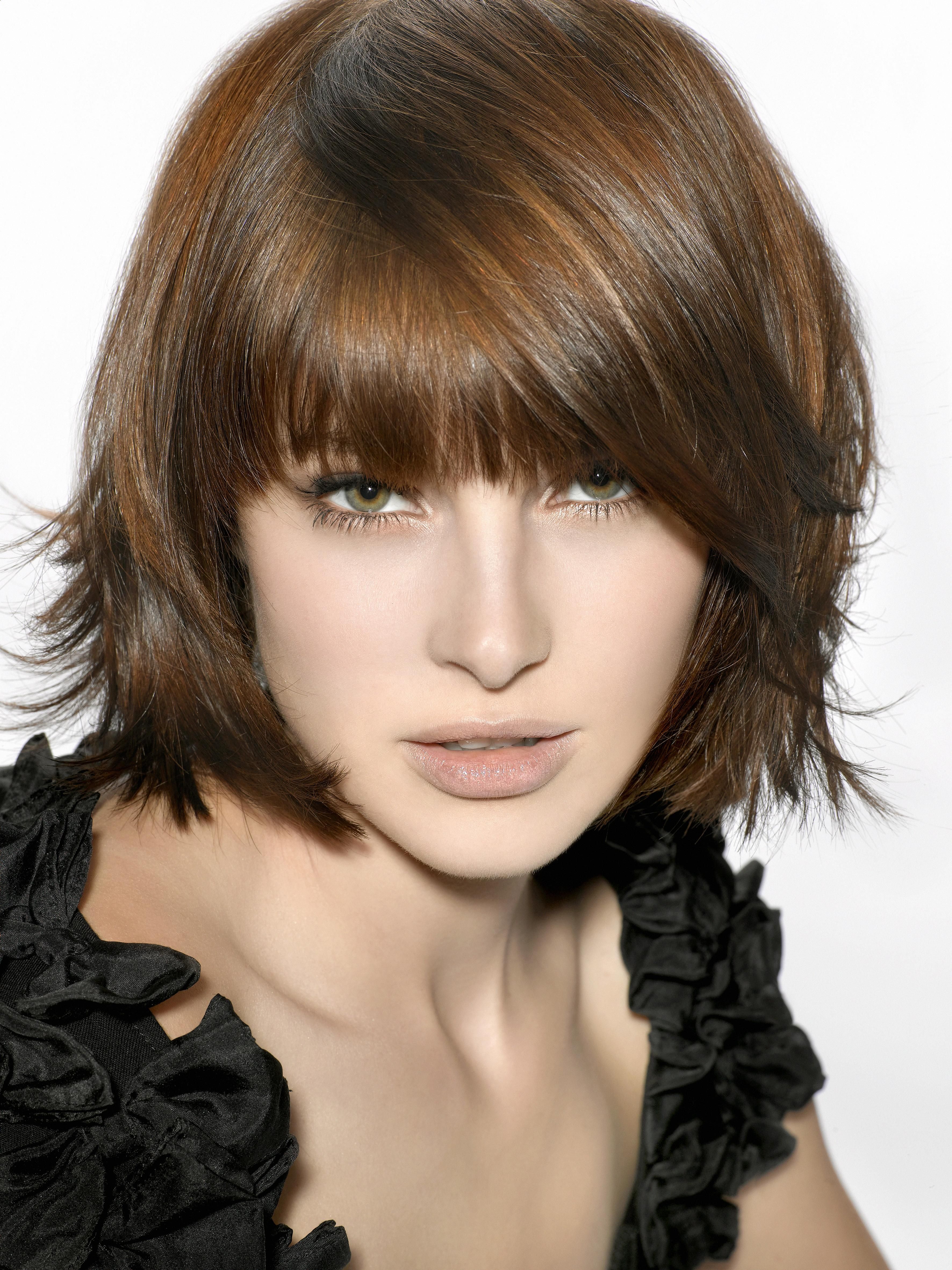 Это для всех брюнеток. Придайте оттенок своим каштановым волосам, умело выделив основу прически (используя ту же цветовую категорию).Завершить новый стиль можно челкой, которая станет отличным дополнением любой стрижки на средние волосы.