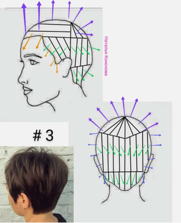 Схема 3.3) Текстурная стрижка круглой формы. На самом деле, одну и ту же стрижку можно выполнить разными способами. Какой способ выберет мастер будет зависеть от структуры, фактуры волос, формы лица и головы и других нюансов.