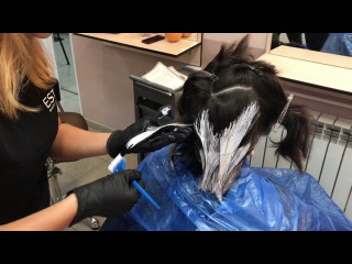 Красители подбираются так, чтобы между оттенками не было большой разницы — иначе выглядеть будет очень грубо. От корней делается отступ в несколько сантиметров. Краска наносится хаотичными мазками, без четкой границы. Время, которое краска остается на волосах, мастер выбирает индивидуально, исходя их структуры прядей, начального цвета и желаемого оттенка.