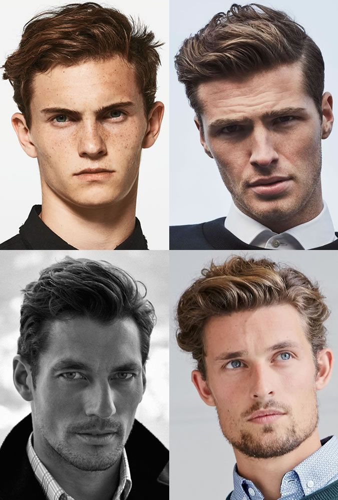 Обладатели квадратного лица выглядят наиболее мужественно и брутально. Им подходят стрижки с ассиметричным пробором — по бокам волосы короче, чем сверху. Легкая растрепанность не помешает, а лишь подчеркнет вашу индивидуальность. Мужские стрижки с длинными волосами категорически не подойдут квадратному типу лица. Мужские стрижки средней длины подойдут обладателям треугольного лица, при этом необходимо сделать зачес в одну сторону. Челка подойдет мужчинам с бриллиантовым типом лица, когда скулы широкие, а подбородок и лоб уже.