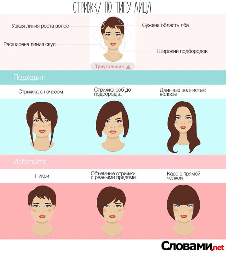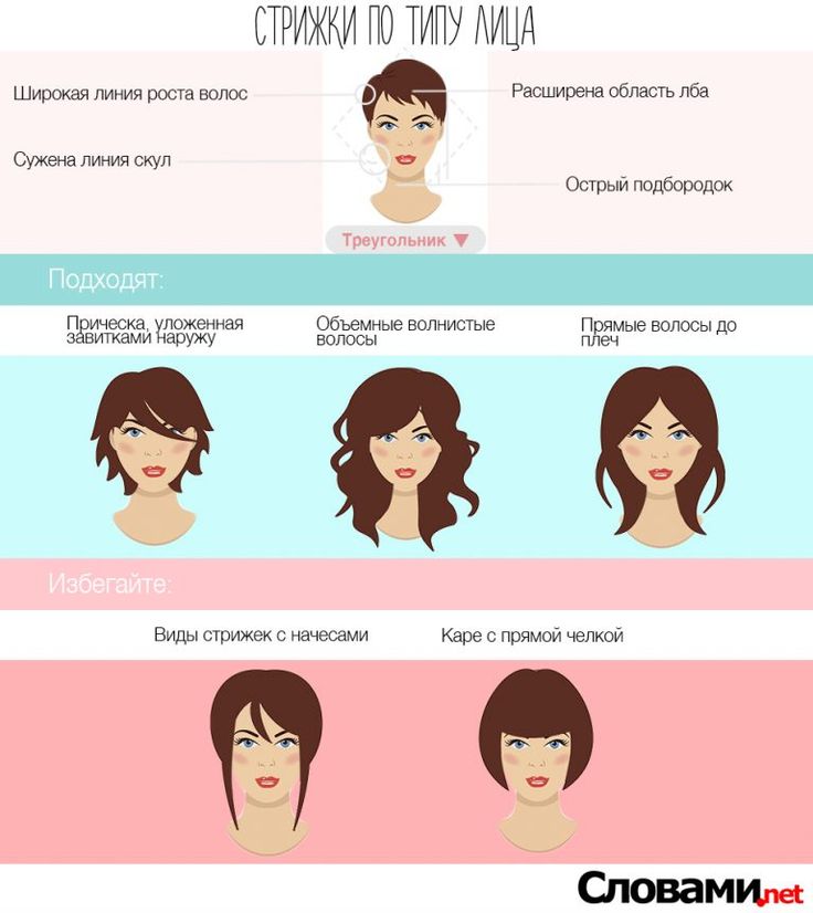 Обладателям треугольного лица необходима стрижка позволяющая создать массу у подбородка, а наличие ассиметричной челки обязательно.