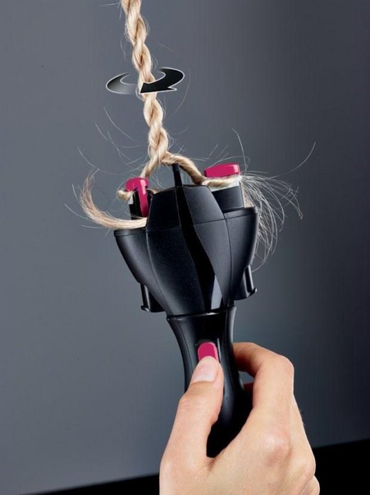 Принцип работы стайлера заключается в закручивании жгутов из прядей волос. Из жгутов впоследствии делаются косички. При этом все, что требуется от владельца приспособления — нажать на кнопку включения и держать его под требуемым углом в зависимости от прически. При включении стайлер начинает закручивать пряди против или по часовой стрелке в жгутики. Они перекручиваются между собой в косы. Одновременно вы сможете заплести одну косичку. Поэтому после окончания работы сразу переходите к следующим прядям.В обзорах, опубликованных в Сети, достаточно видео и фото, отображающих пользование приспособлением.