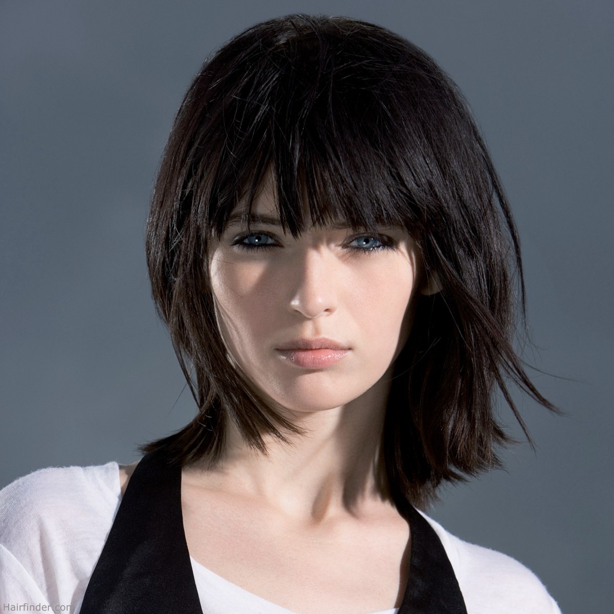 Источник101. Жил в темной брюнетке Стрижка волнистого длинного боба с челкой