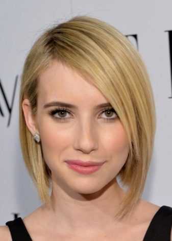 Треугольный тип лица отличается широким лбом, зауженным подбородком и выдающимися скулами. Поэтому стрижка должна скрывать слишком широкий лоб, акцентируя внимание на центральной части лица. Оптимальная длина волос — до плеч.