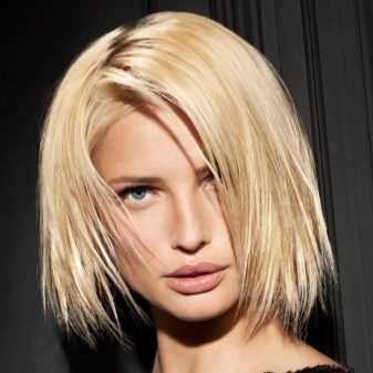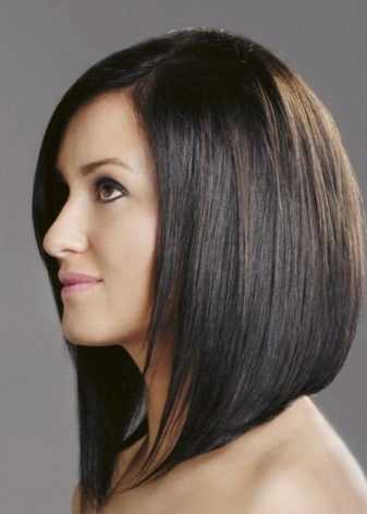 Удлиненные передние пряди выстригаются под наклоном по сравнению с затылочной частью. Это дает возможность девушкам, с осторожностью относящихся к резкой смене имиджа, сохранить свою длину.