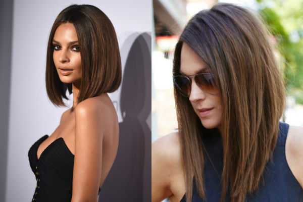 Оптимальный вариант для волос до уровня плеч — боб-каре с удлинением. Также неплохо будет смотреться классическое каре и градуированное.