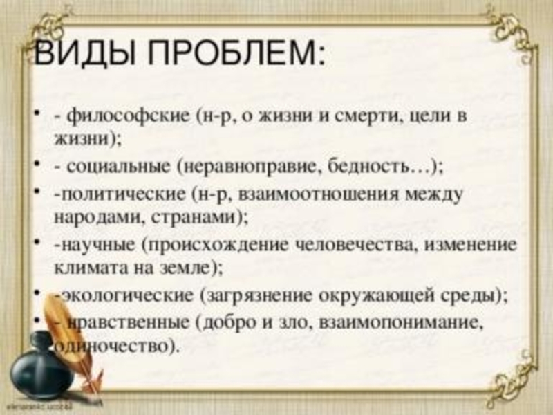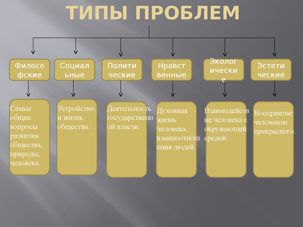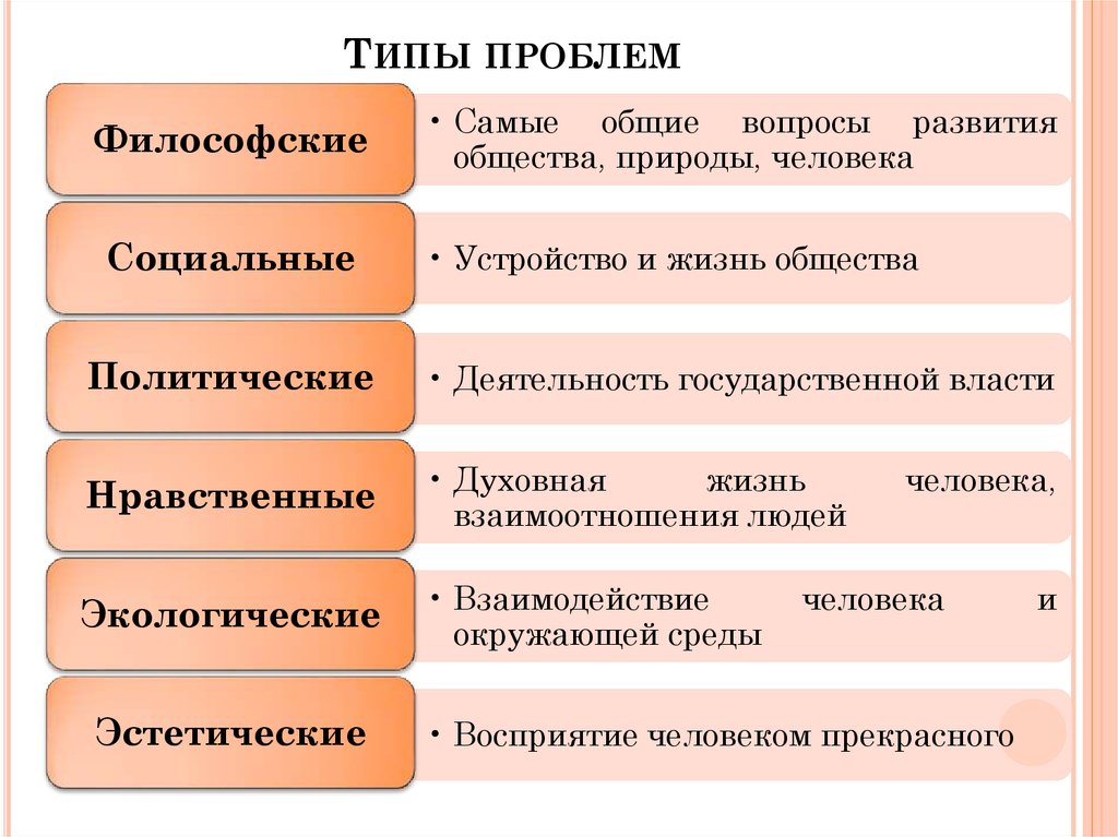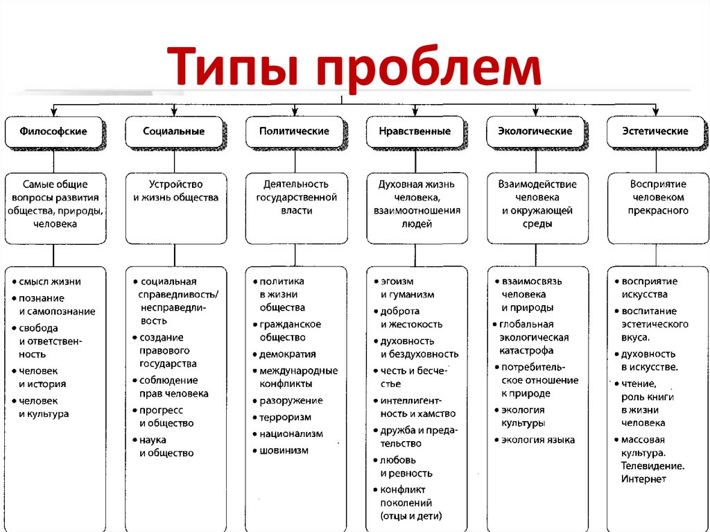 Изменчивость и многообразие проявлений мира есть основная причина того, что и проблемы отличаются по своей сути. Так, они могут касаться следующих сфер жизни: