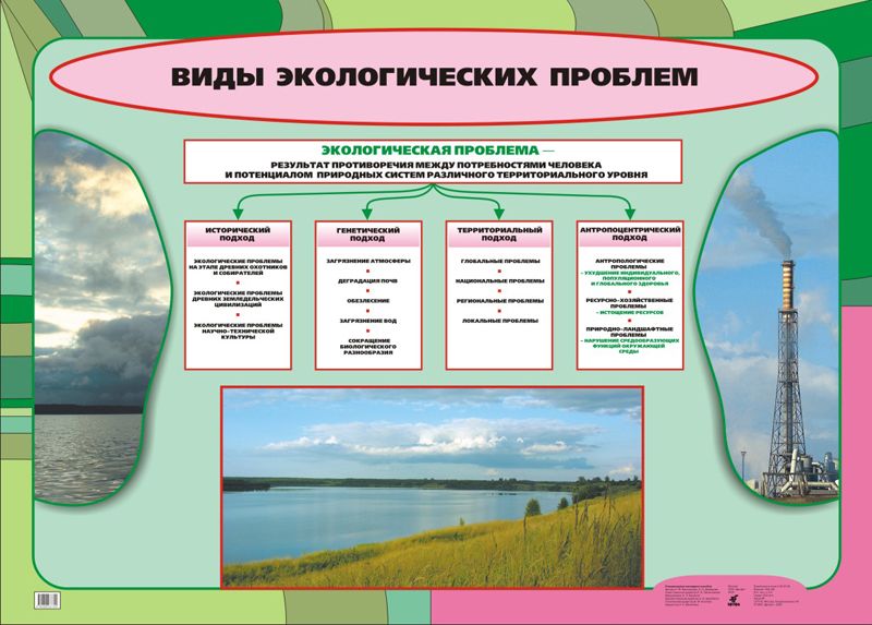 Экологические виды проблем порождает человеческая деятельность, ставящая во главу угла удовлетворение интересов человека и вызывающая необратимые и негативные изменения в природной среде. Среди наиболее актуальных экологических проблем можно выделить разрушение озонового слоя, парниковый эффект, кислотные осадки и вопрос утилизации отходов. Экология и состояние планеты нуждаются в активнейших мерах разрешения этих проблем, по праву считающихся проблемами глобального масштаба.