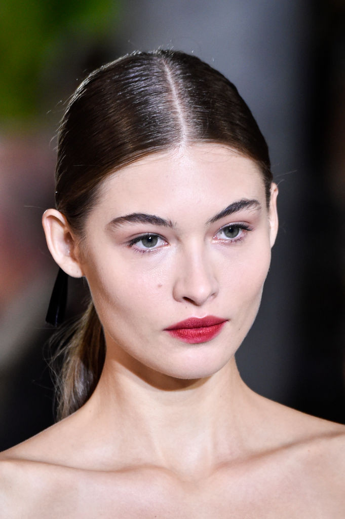 Центральный пробор красиво смотрится на объемных волосах, вне зависимости от того, прямые они или вьющиеся. Длина волос должна быть ниже подбородка, как у моделей на фото.