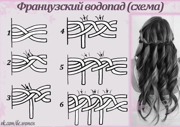 Объемный водопад прическа. Как сделать косу водопад схема плетения