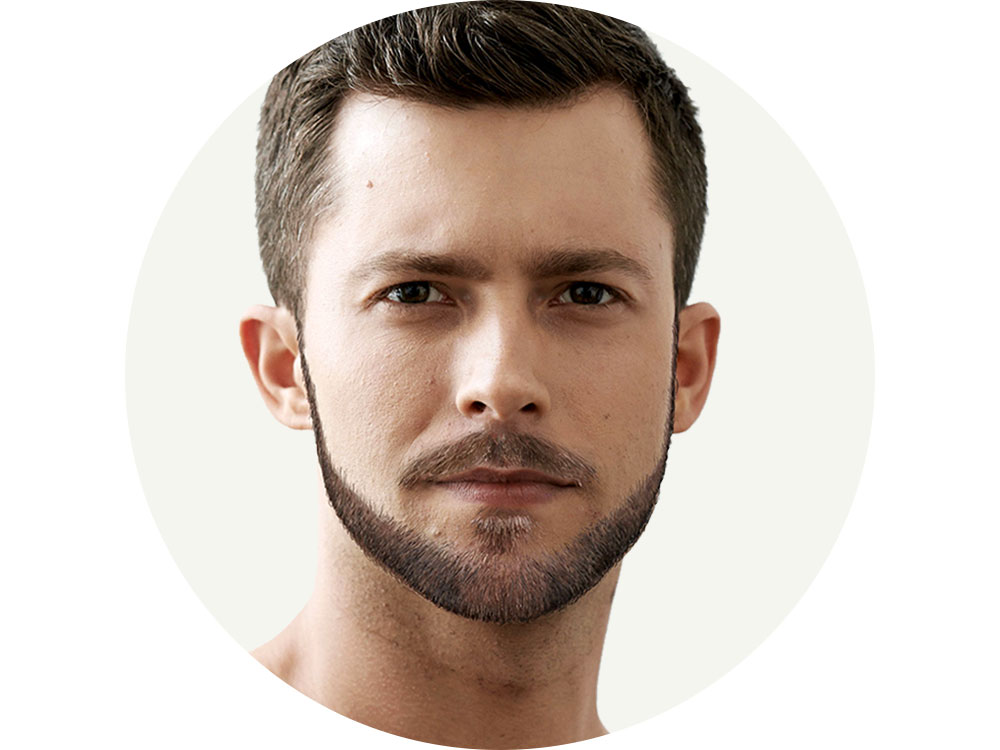 «Округлая форма лица выигрывает от треугольного стиля», — советует Луи. «Выберите бороду, которая короче на щеках и длиннее к подбородку, чтобы выглядеть по-настоящему лестно».