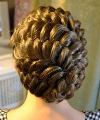 Причём прядки в колосок подбираются мелко и равномерно, но не часто. Тогда в «крылышке» видна каждая прядка, и именно гармоничное чередование одинаковых прядок, удерживаемых в таком положении окаймляющей косичкой, и создаёт парадность и воздушность причёски.