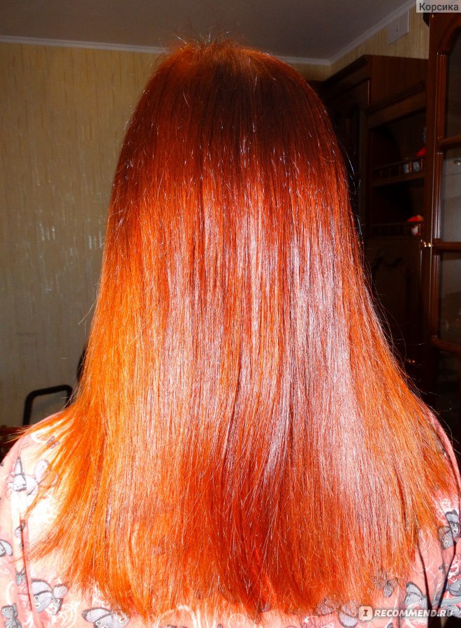Итог: трансформация желтых волос в огненные.