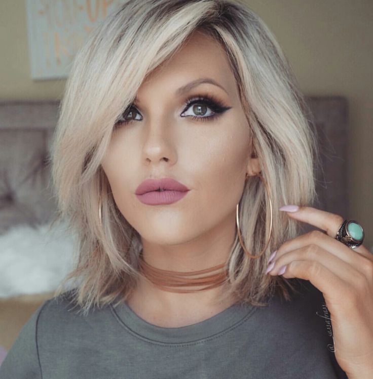Малейшее покраснение или черная точка испортят весь образ. - Очень выигрышно будет смотреться каре пепельный блонд с темными корнями. Для девушек, у которых природный цвет волос является более затемненным по сравнению с пепельным, это очень выигрышный вариант. При отрастании корней прическа будет оставаться стильной и гармоничной.