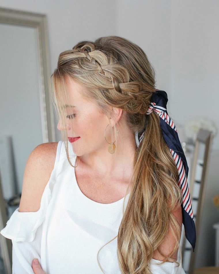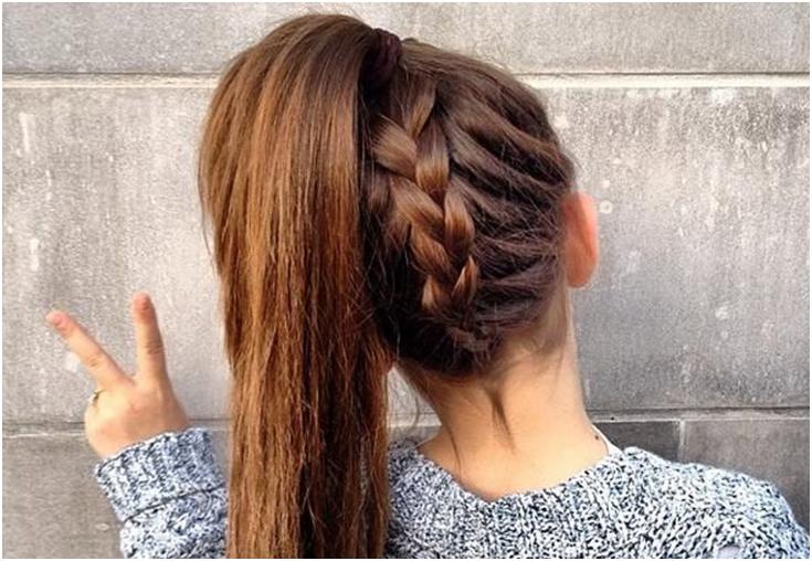А вот еще один вариант сочетания конского хвоста с косой, только теперь необходимо заплести косу не от лба, а от шеи. Чем выше будет хвост, тем красивее будет смотреться прическа.