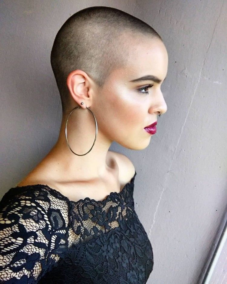 Женская прическа наголо «под ноль» — это очень радикальное и дерзкое решение, если говорить о смене вашего имиджа. Сделать подобную стрижку может осмелиться только по-настоящему сильная и уверенная в себе женщина, которую не пугают мнения и разговоры окружающих людей. Представительницы слабого пола выбирают прическу «под ноль» крайне редко, но если уже решаются на подобное, то на это однозначно есть какие-то весомые причины.
