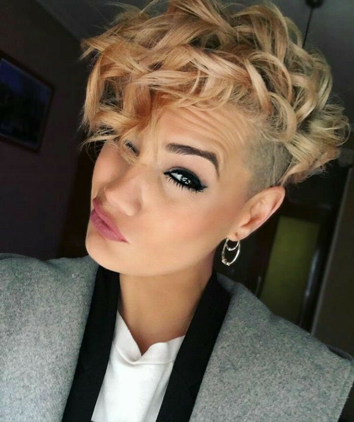 В пикси приветствуются не только гладко уложенные пряди, но и изысканно завивающиеся кудряшки, которые можно зафиксировать муссом