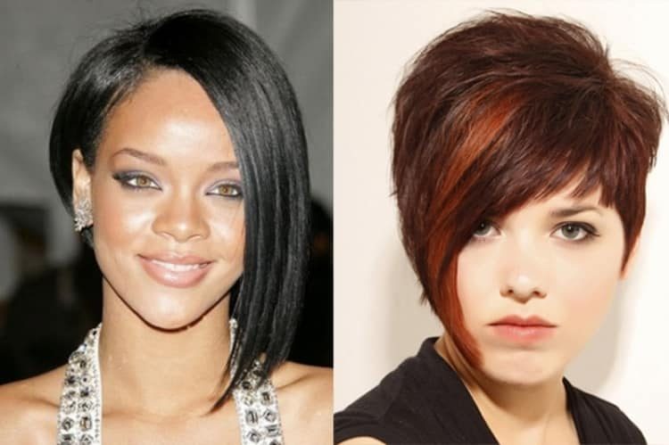 Идеальны для квадратного лица стрижка каскад или лесенка. Квадратном улицу пойдут равные пряди, возможно даже, выкрашенные в разные цвета. Также подойдет ярко выраженная диспропорция и асимметричность, бросающаяся в глаза. Все это поможет отвлечь внимание от излишне крупных черт. - Для лица треугольной формы подойдет асимметричное каре или креативный боб. Эти варианты стрижек визуально прикроют излишне широкий лоб, что сделает лицо более гармоничным. Треугольному лицу подойдет лесенка с разноцветными прядями.