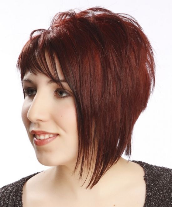 - Скорректировать лицо треугольной формы поможет асимметричный или классический каскад. Но не стоит делать высокую стрижку от макушки, поскольку она визуально может сделать лоб еще более широким.