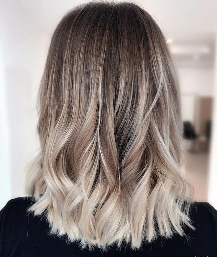 Красиво и дорого смотрится балаяж в холодных тонах блонда, таких как платиновый, жемчужный, серебристый.