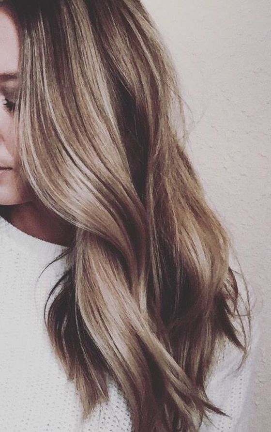 Если вы хотите стать полной блондинкой, но не хотите брать на себя обязательство, возьмите тональные пепельно-коричневые волосы на несколько оттенков светлее с блондинистыми бликами. Сосредоточьтесь на кончиках волос, но не забывайте пробиваться сквозь макушку головы для естественного вида.