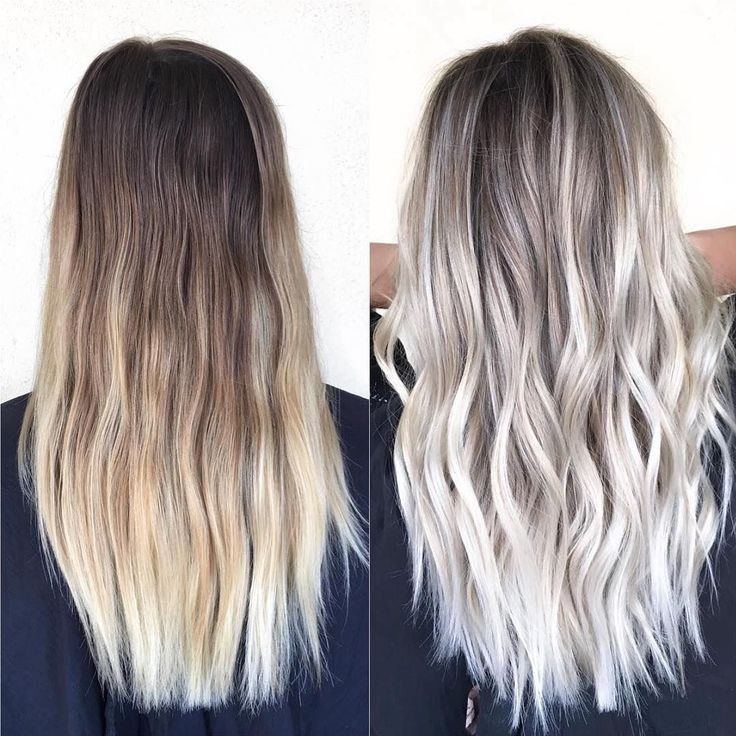 Хотите изменить свой образ с «соседской девушки» на «самую крутую девушку в квартале»? Тогда этот холодный тонированный блонд – это то, что вам нужно. Базовый цвет пепельного блонда медленно переходит в платиновый блонд в этом прохладном стиле блонда. Многослойная стрижка до плеч и упругие локоны выводят этот образ на совершенно новый уровень.
