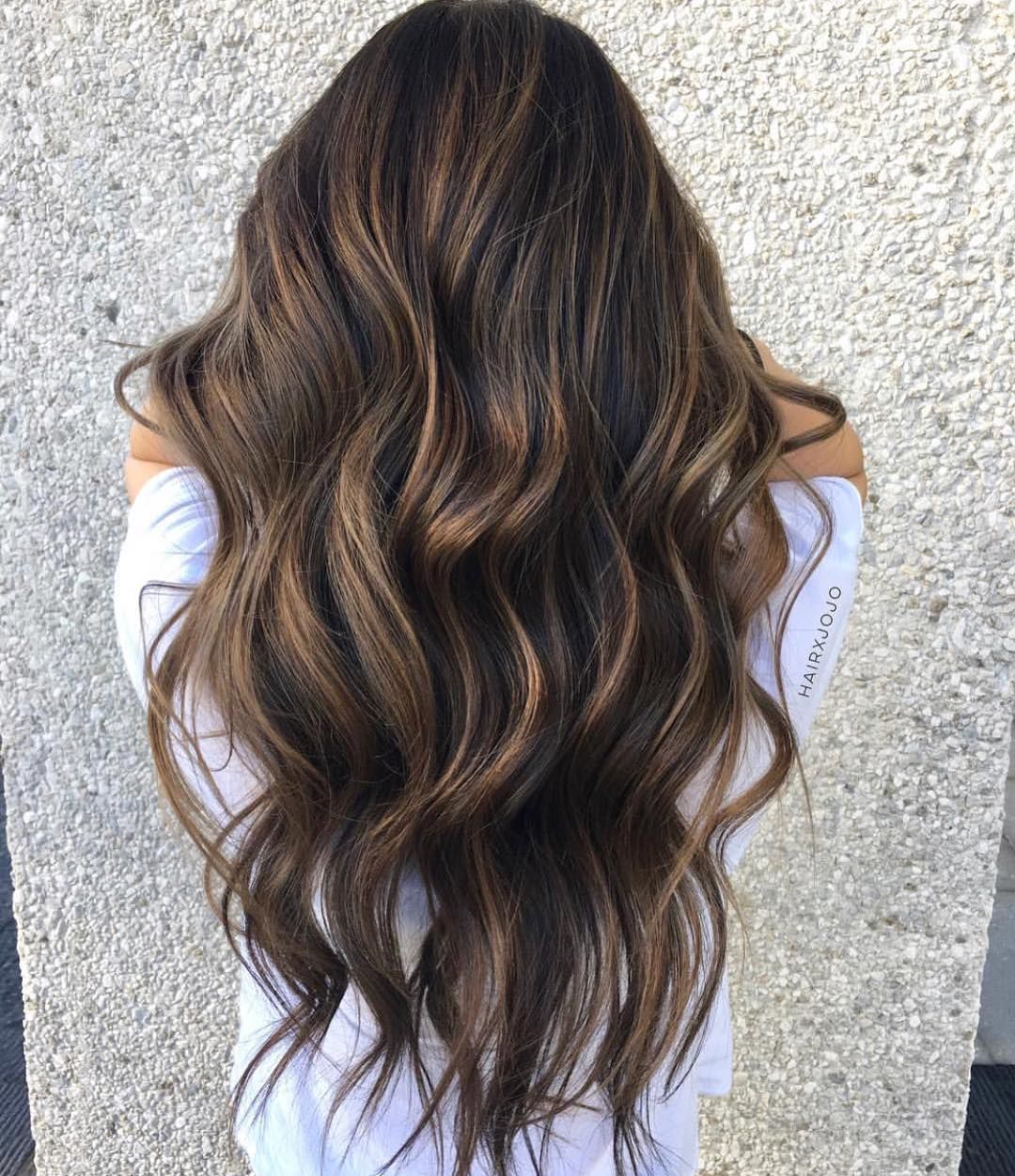 Карамельный балаяж идеально подходит темнокожим шатенкам. Это хороший способ немного осветлить, не обесцвечивая большую часть волос.