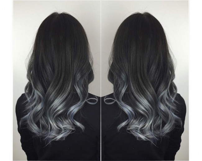 В то время как корни остаются черными, длина имеет несколько пепельных бликов для контраста.