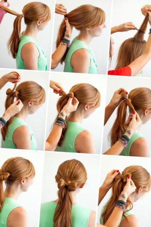 2. Во время того как делаете хвост, не протягивайте волосы до конца, а оставьте как бы петлю.