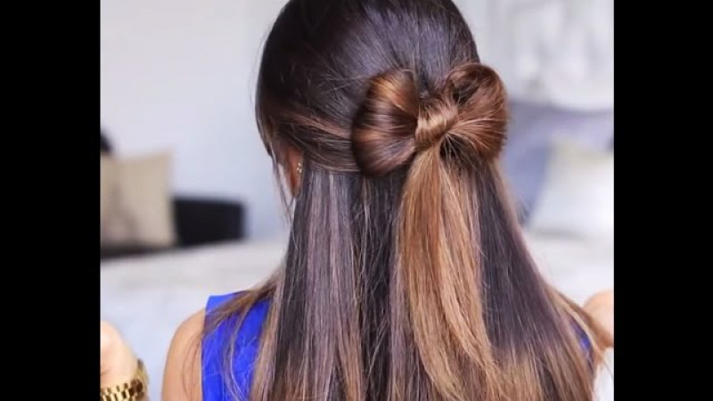 Как я и говорила, прическа делается достаточно легко и быстро, а самое главное, что прическа бант из волос позволяет экспериментировать. Вы можете сделать бант не из всех волос, а взять лишь небольшую часть, остальные волосы лучше всего накрутить на плойку. Такая прическа выглядит игриво и оригинально.