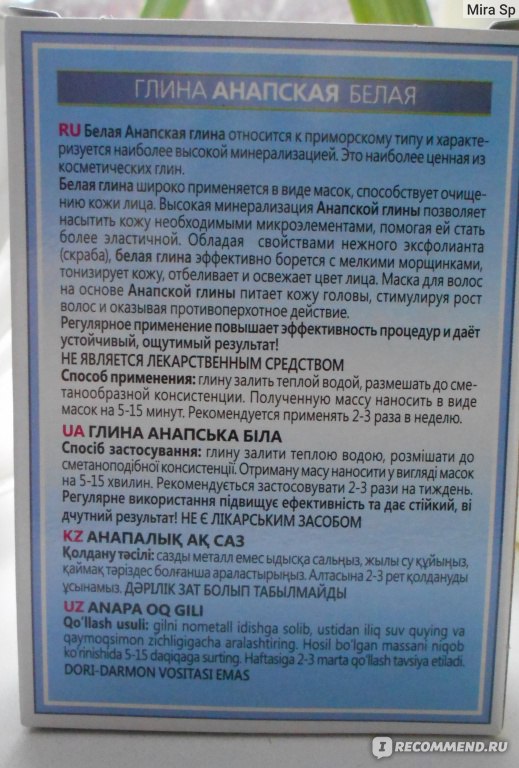 Обязательно перед первым использованием необходимо провести аллергический тест, во избежании неблагоприятных последствий: покраснений на коже, неприятный зуд, крапивница и прочие раздражающие факторы. Чтобы не проснуться с опухшим и затекшим лицом, покрытым волдырями. Это я утрирую конечно, но не пренебрегайте этим тестом: нанести небольшое количество разведенной глины с водой до состояния кашицы, на локтевой сгиб. Поистечении 10 минут не должно быт никакой реакции.