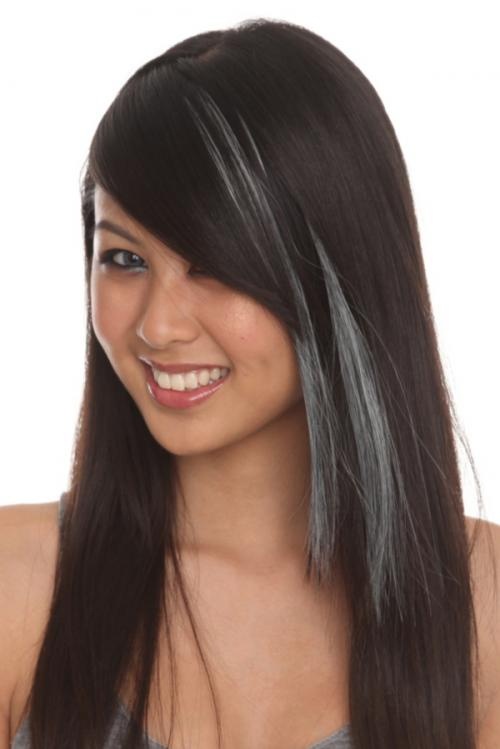 Еще одним вариантом создания белых прядей на темных волосах является колорирование. Оно предусматривает окрашивание отдельно выбранных прядей в несколько цветов, отличающихся друг от друга.