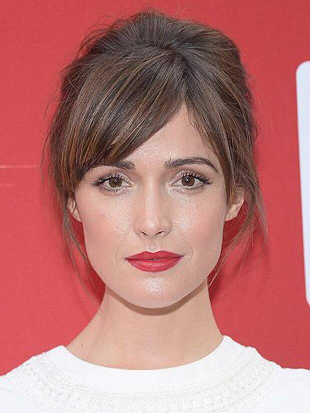 Носите длинную челку, чтобы обрамить скулы, затем соберите остальные волосы в небрежную прическу на затылке.