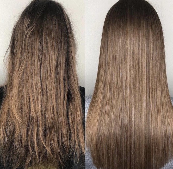 Эффект: волосы становятся прямыми, упругими, блестящими и ухоженными. Пряди не путаются, легко расчесываются и поддаются укладке. Кроме того, они надежно защищены от сечения и ломкости, термических и физических воздействий. Результат держится до полугода при правильном домашнем уходе.