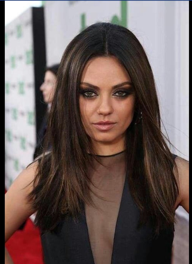 Мила Кунис попробовала очень темный и прохладный цвет эспрессо, с легкими бликами золотисто-коричневого оттенка на концах. Объемные кудри, изящно уложенные на одну сторону, – идеальная прическа для выхода в свет или романтического свидания.