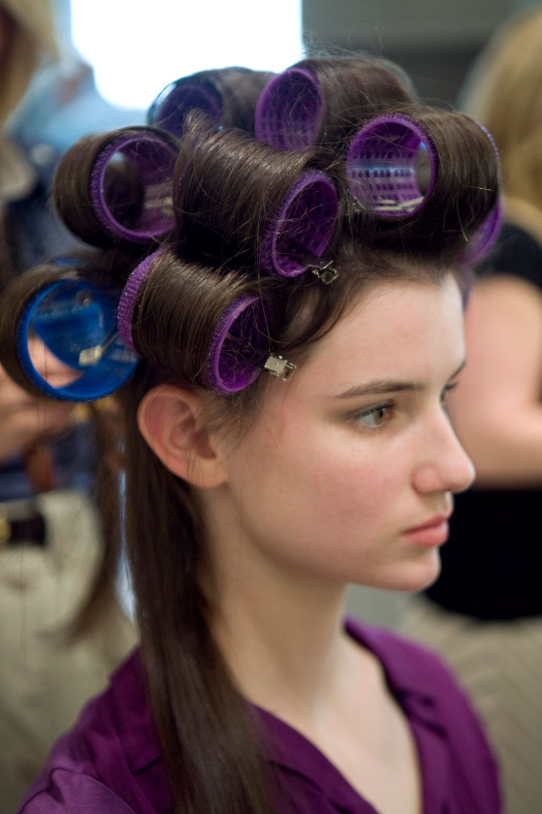 - Обработать пеной начёсанные участки волос, не нарушая заданного направления.