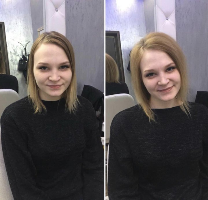 По окончании процедуры результат становится сразу же заметен — жиденький хвостик или прилизанная стрижка превращается в гриву сияющих волос.
