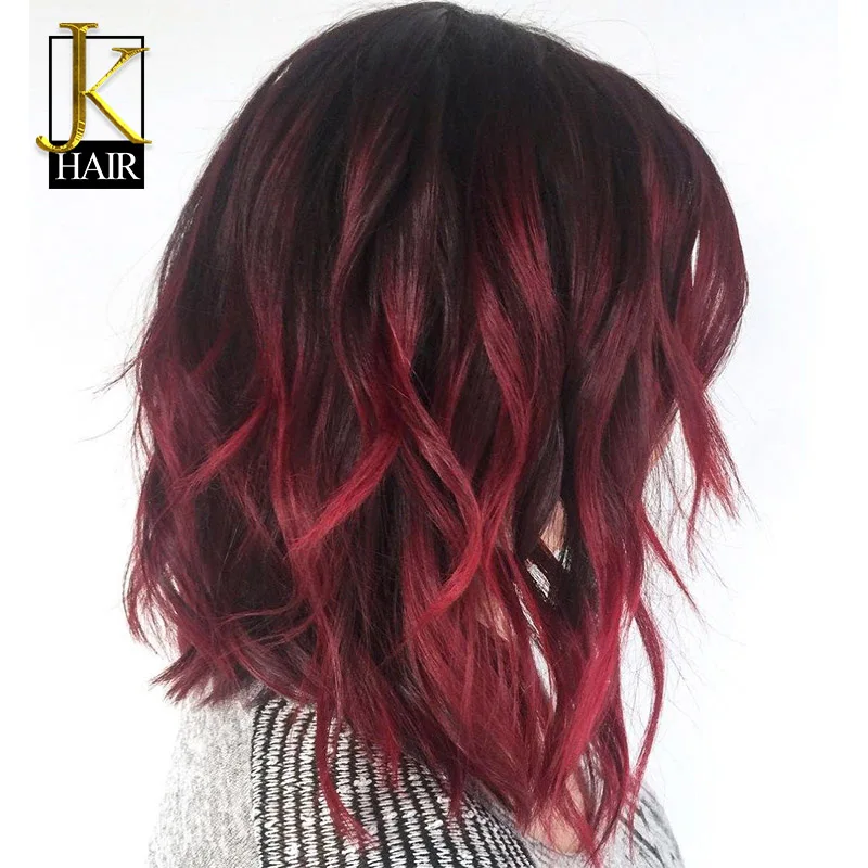 Это естественный, потрясающий вид с оттенком цвета. Черные корни с бордовыми бликами омбре. Он идеально подходит для любого случая, и вам не нужно добавлять яркие цвета.