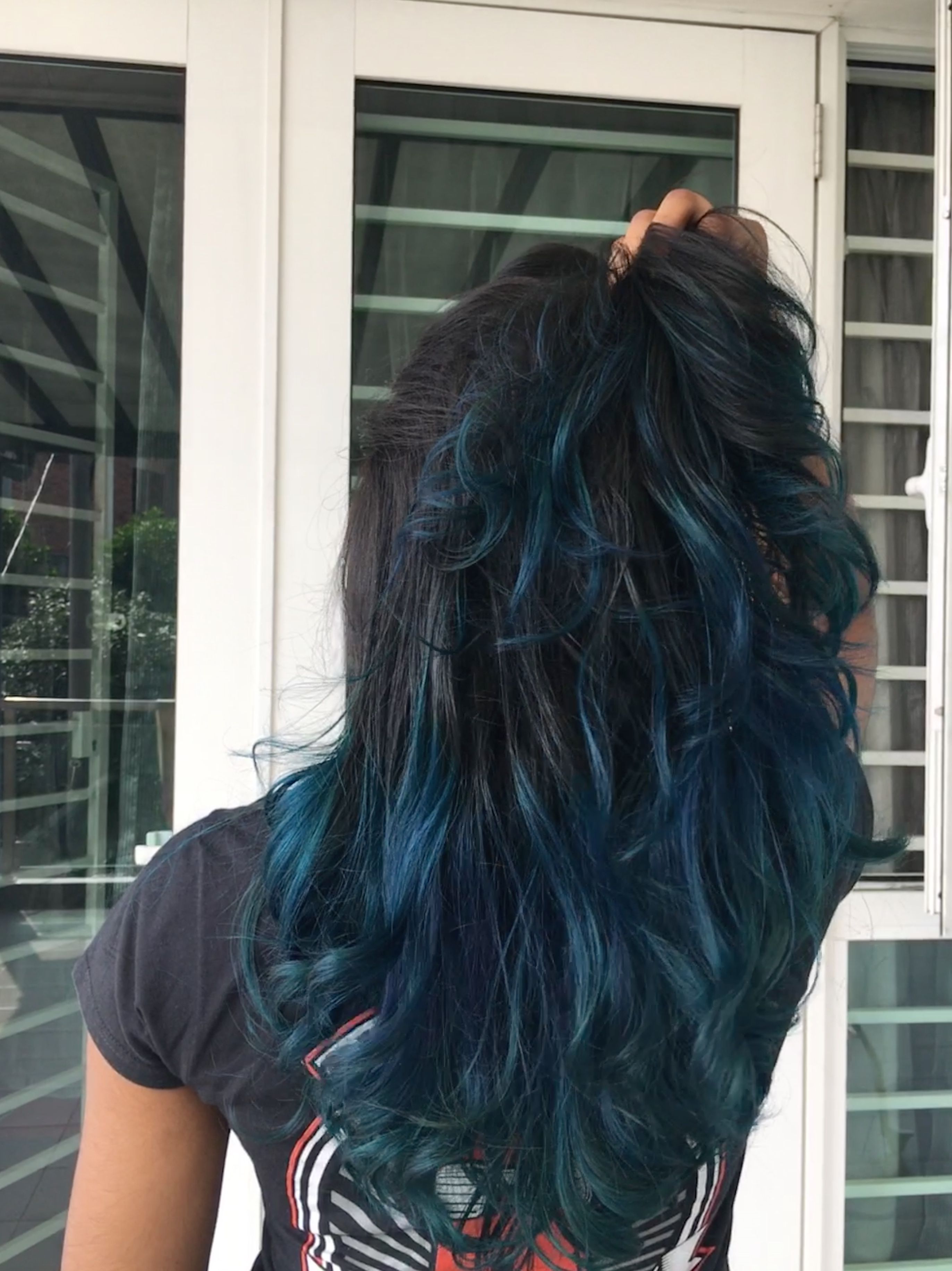 Черные волосы с голубыми кончиками
