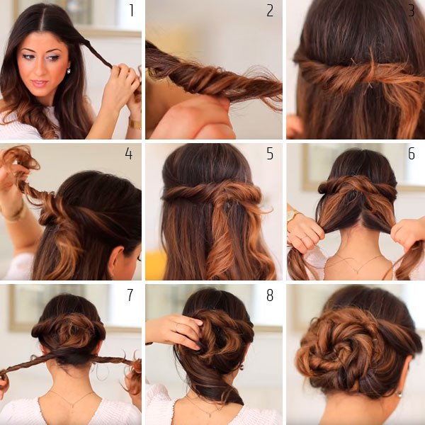 Ниже мы собрали несколько пошаговых вариантов для вдохновения. И не забудьте в конце сбрызнуть прическу лаком сильной степени фиксации или блеском для волос, иначе вся красота рассыпется раньше, чем вы планировали.