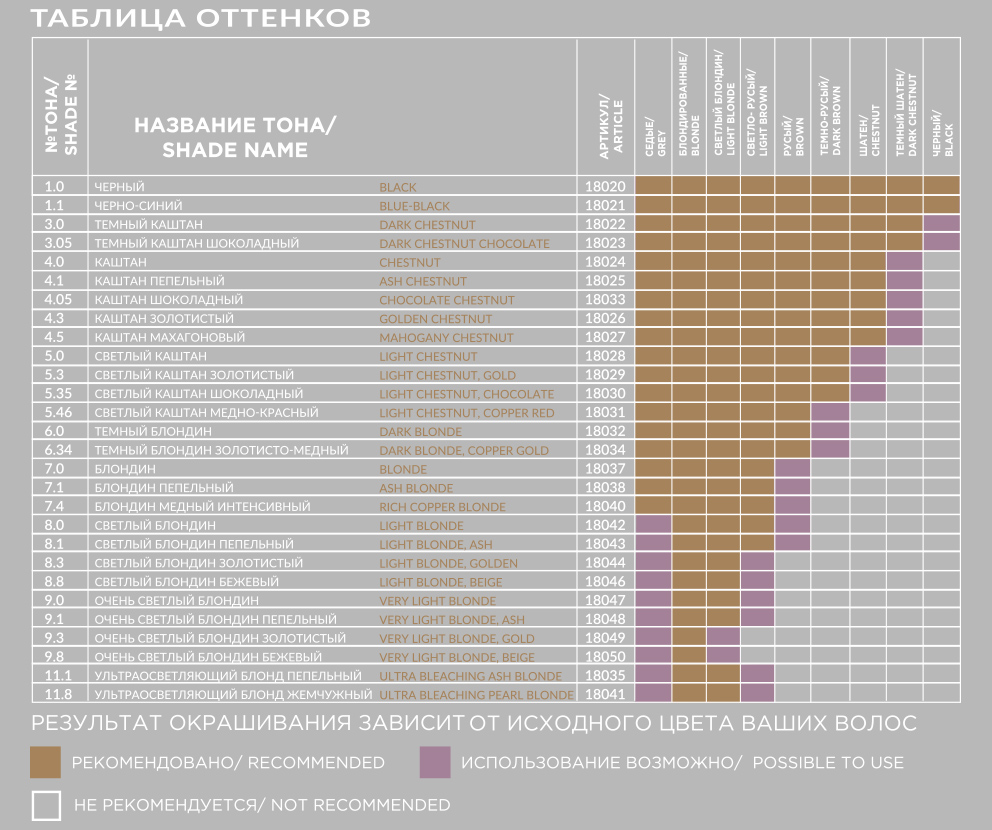 Важно помнить, что результат окрашивания волос, который вы получаете при использовании краски, зависит от цвета ваших волос перед нанесением краски и формулы краски для проявителя, используемого для смешивания краски для волос.