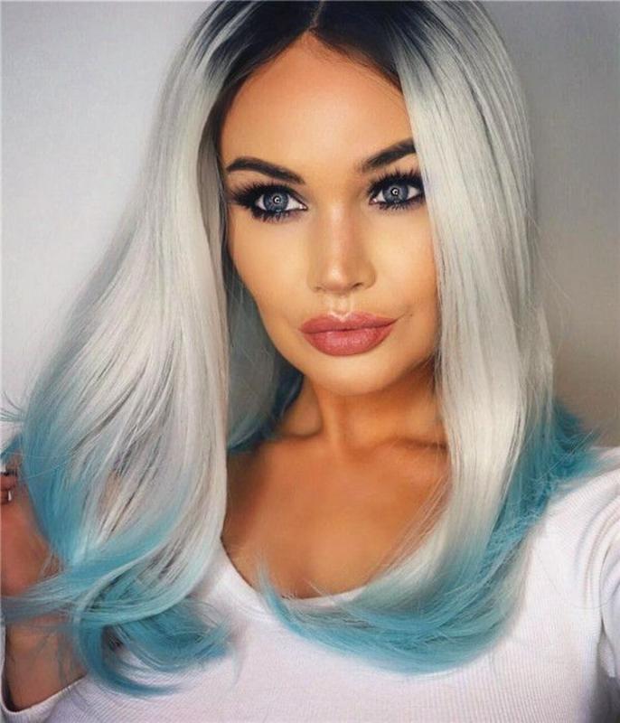 Удивительно выглядят на бледной коже лица голубые глаза. К тому же это универсальный образ, к которому подойдут как довольно светлые, так и темные контрастные тона. Наиболее рекомендуемыми оттенками для окрашивания волос считаются пепельный, светло-русый, блондин, цвет черный шоколад, черные тона.