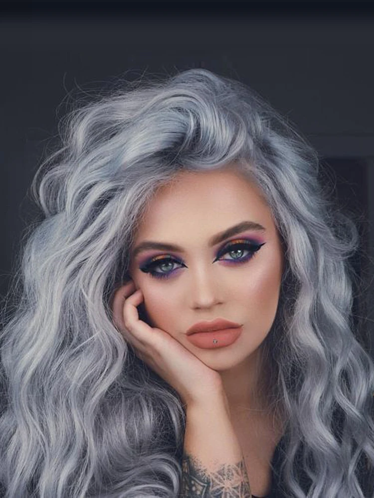 34. Пышные локоны с серебристым оттенком. Может быть сложно угнаться за окрашенными волосами, но результат потрясающий, потому что вы можете продемонстрировать свой шикарный модный серебристый цвет.