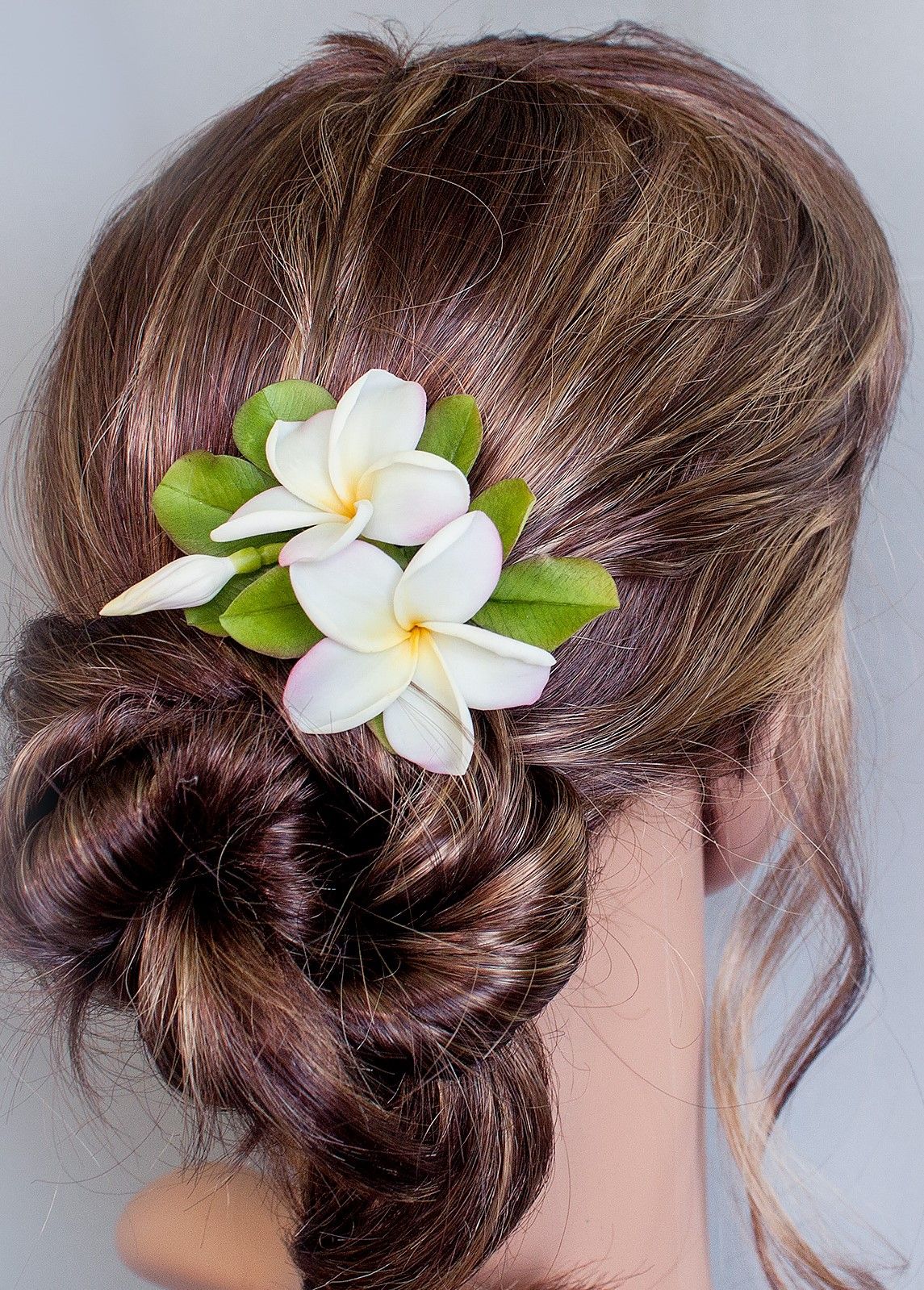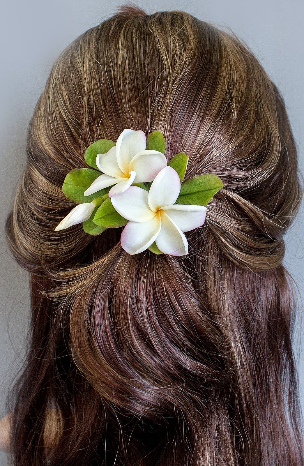 - Возьмите один белый цветок и поместите его на одной стороне головы между волосами так, чтобы был виден только цветок, и стебель прилипал к вашим волосам, чтобы сохранить их нетронутыми.
