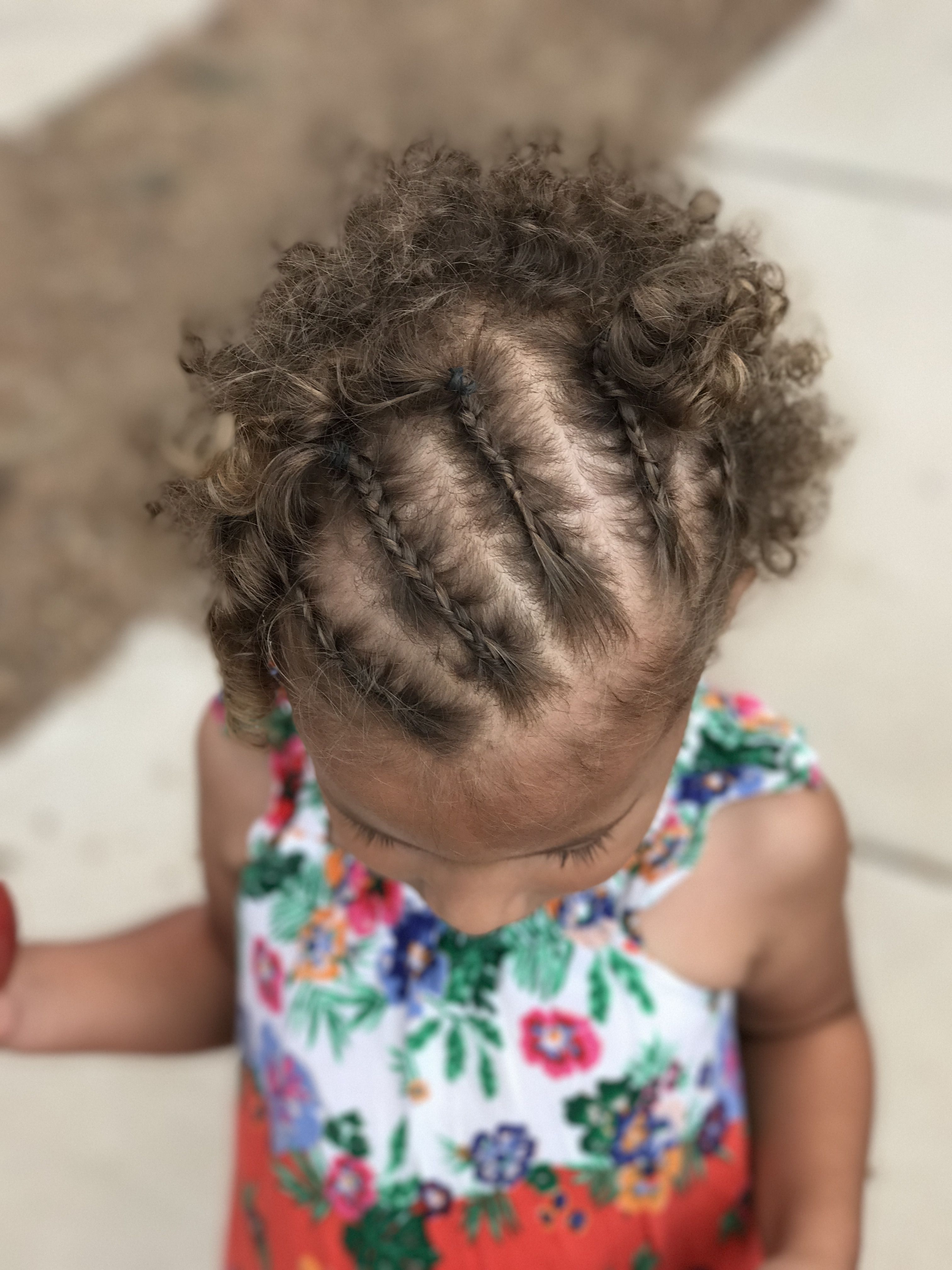 chiaubreyКосички — отличный способ укротить надоедливые кудри и уберечь их от лица маленьких девочек. Они также могут быть украшены бусинами или бантиками для дополнительного забавного прикосновения.