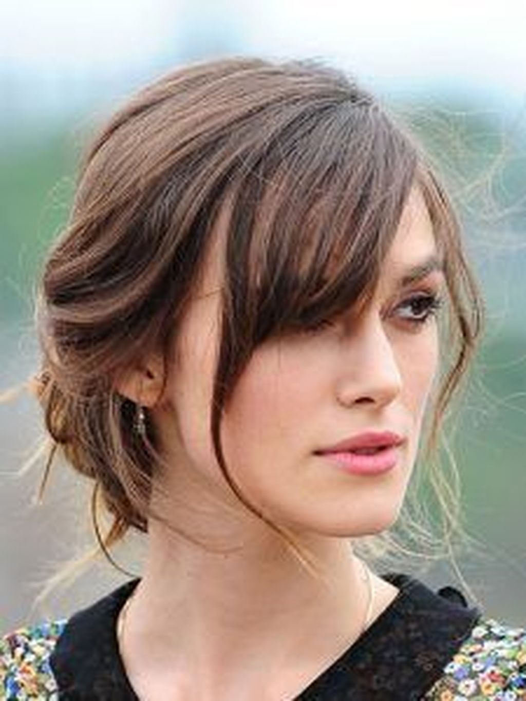 Чтобы добиться лёгкости прядок, мастера могут предложить сделать рваные кончики. С ними получается изысканный вариант без ограничений по возрасту. Длина не принципиальна, да и основа может быть вариативной, но рваные кончики придают лёгкости и свежести даже самому консервативному образу. С ними хорошо сочетается чёлка. Сложной укладки рваные пряди не требуют, но нуждаются в коррекции, чтобы не возникал эффект неряшливости. Для того чтобы сделать эффектные причёски на волосы средней длины с чёлкой, нужно воспользоваться утюжком. Идеально прямые пряди можно украсить при помощи диадемы или крупных цветов.
