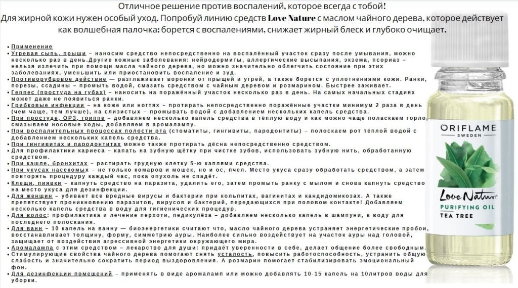 Но будьте осторожны- эфирное масло чайного дерева в чистом виде — сильнейший компонент.